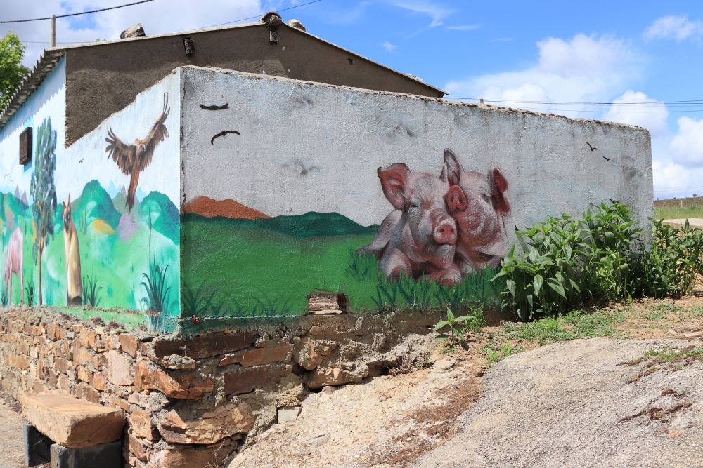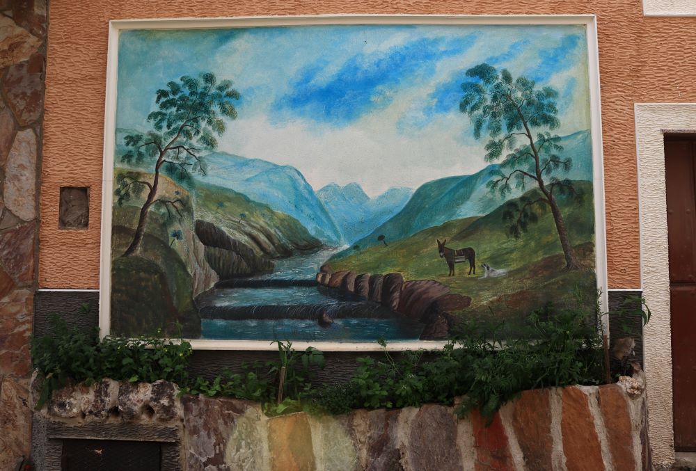 Vista de los tejados de Ferreruela con la Sierra al fondo Cartel anunciando la Ruta de los Valles en Ferreruela Hermosa entrada a un huerto en el centro del puebloEntrada a un huerto coronada con arco de rosas Mural al aire librePared antigua, bicis y sillas de madera Fuente y árbolFuente de piedra con bebedero de animalesPuerta de entrada a la iglesia y escalera que sube al campanarioMural en la báscula de animales Calle FontanaAntiquísima calle estrechaLa báscula de camiones, que en primavera se mimetiza con el entorno